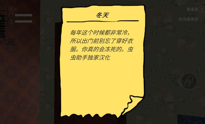 4、出门前记得穿厚点,左上角是你的生命指标,极寒天气下要注意保暖,在外面准备就绪开始改造车。