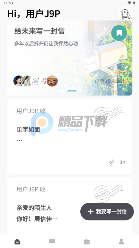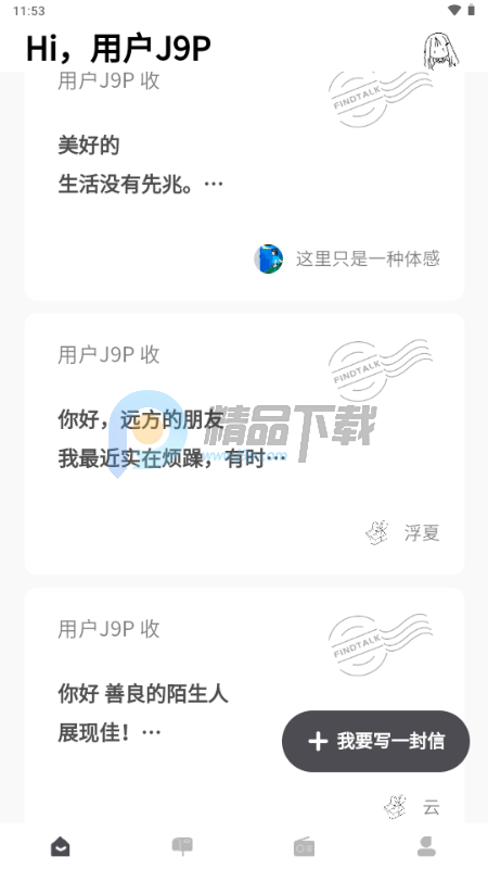 FINDTALK 是一款主打匿名书信交流的慢社交应用,以文字为纽带,为用户打造了一个温和又有深度的情感交流空间。平台摒弃了快节奏的即时聊天模式,鼓励用户静下心来书写心声,无论是分享生活点滴、倾诉内心烦恼,还是寄存不愿对外言说的秘密,都可以倾诉出来。