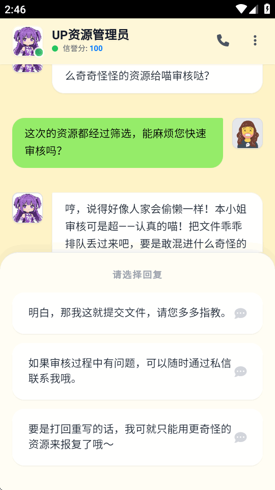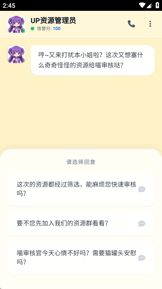 4可自由对话输入想说的话,AI实时理解并反馈,捕捉管理员对话萌点或漏洞提升好感度完成攻略。