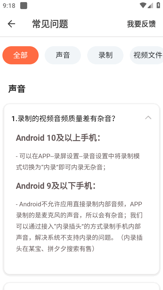 -安卓9及以下版本可通过接入“内录插头”录制手机内部声音,实现内录的功能;(内录插头在某宝、拼夕夕搜索有售)