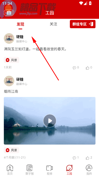 1、在工园页面可以看到其他用户发表的动态