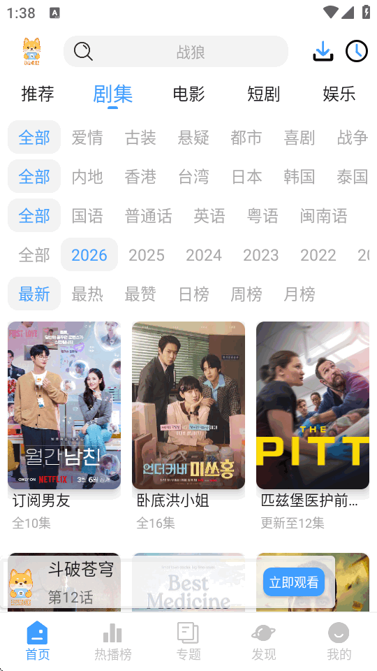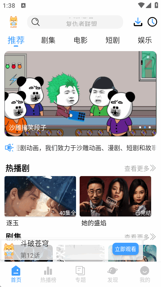 新出的一款超好用的可以看全网热门剧集的平台,短剧汪app不仅有最新最热门的国内外电视剧,电影,综艺,动漫还有热门的漫剧可以观看,资源相当的全面丰富,画质高清,没有任何的广告,支持弹幕功能,可以看比剧集还精彩的弹幕,分类详细支持下载缓存随时看。