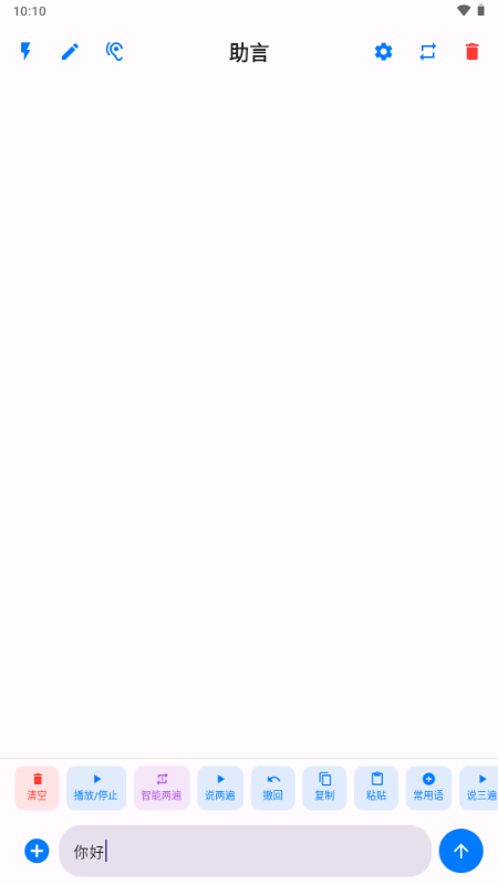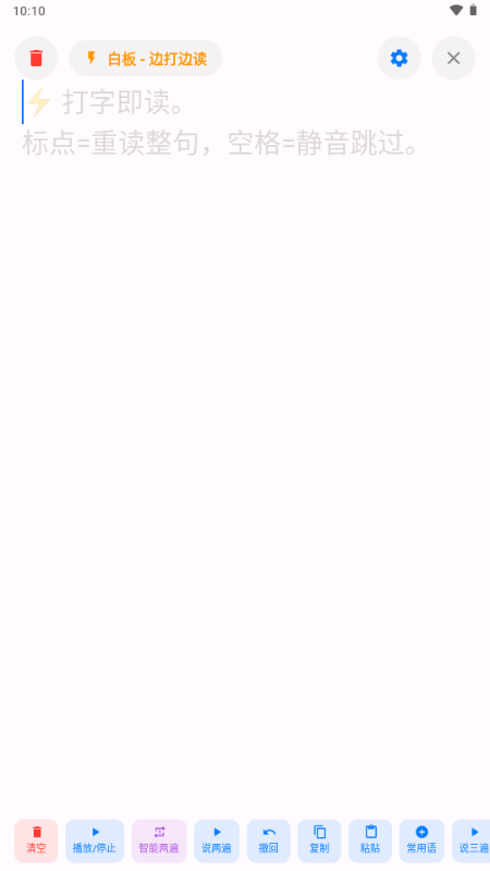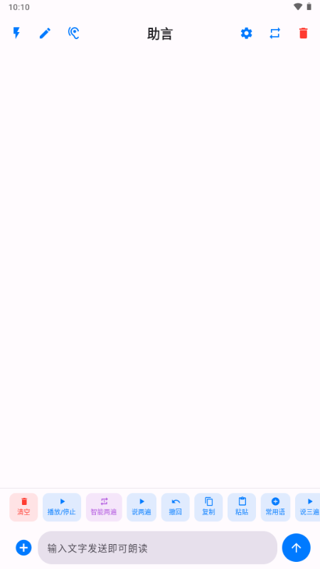 输入即读:在主输入框输入文字,按下回车或点击发送图标,App 将即刻朗读。
