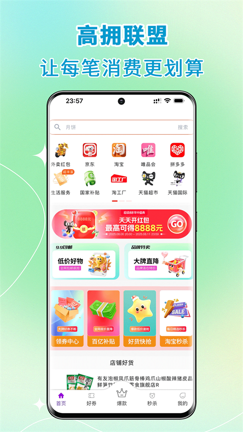 3. 省钱超值:设特价专区,网罗全网最优惠商品,领券超低价,人气爆品低至 1 元。