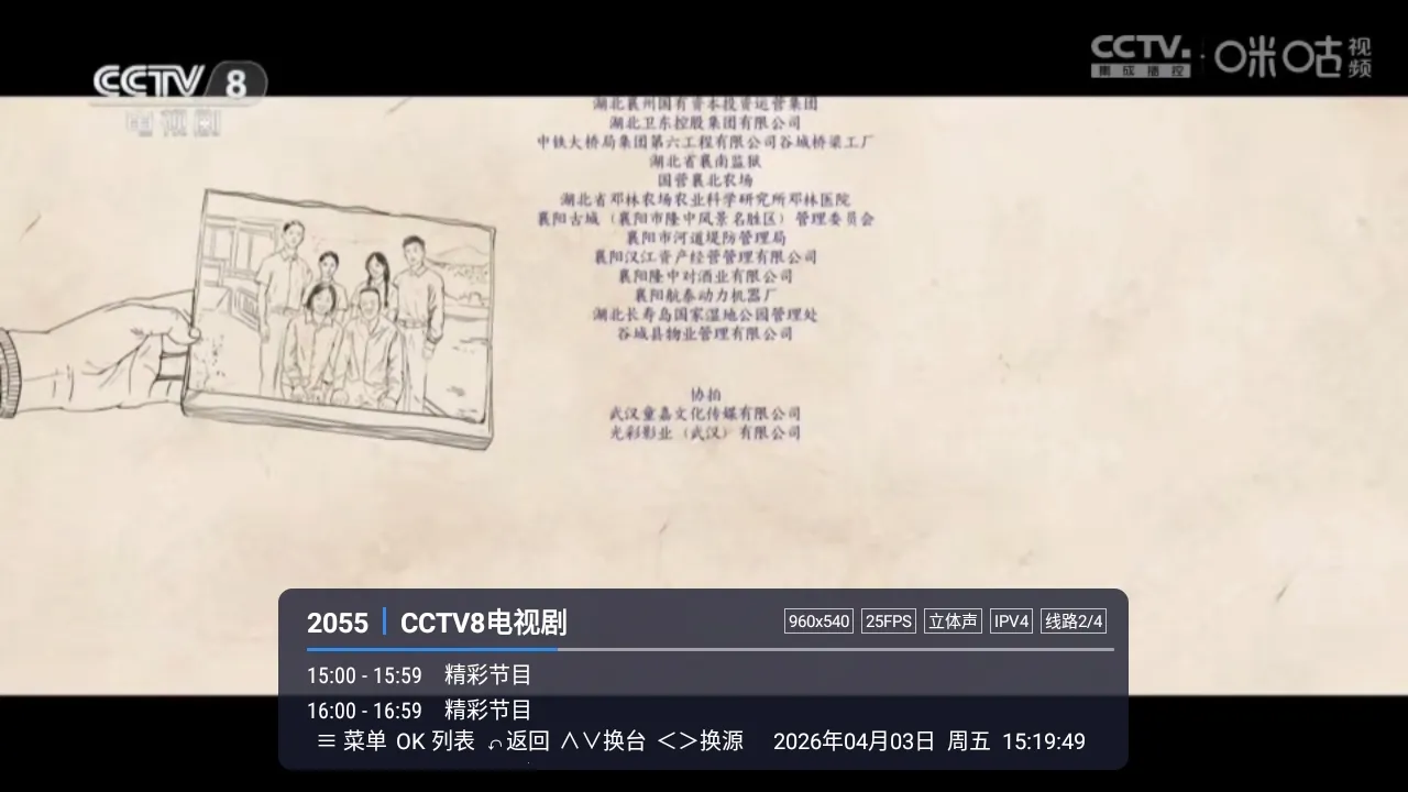 2、点击左侧屏幕唤起电视频道列表。