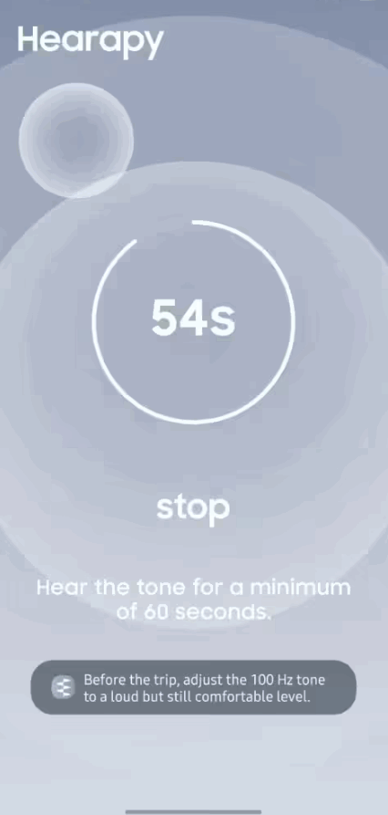 Hearapy是三星官方打造的一款科学防晕车应用,它是通过100赫兹音频缓解晕车症状,不需要任何药物就可以缓解,只是通过声音就可以减轻恶心反胃的症状,拥有高效便捷简单易用的操作,最多可以在两小时内缓解晕动症各类的不适,有需要的可免费下载试用。