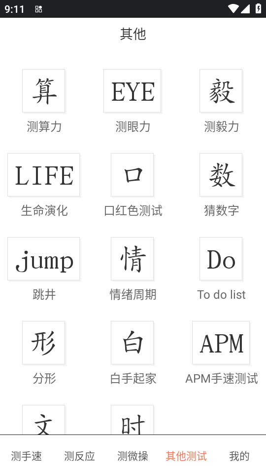2、进入软件后,就可以看到测手速。
