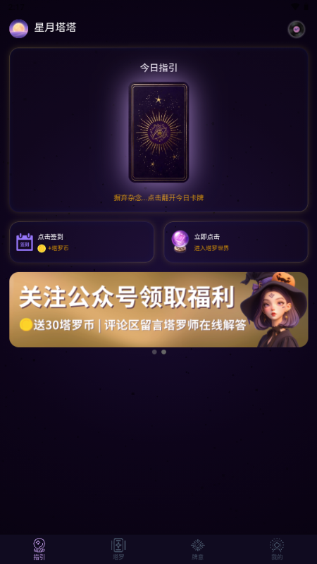 星月塔塔是一款基于塔罗牌文化的数字化娱乐生活应用。我们旨在通过经典的塔罗牌符号,为用户提供一种轻松、趣味的自我探索方式和日常生活娱乐的灵感参考。