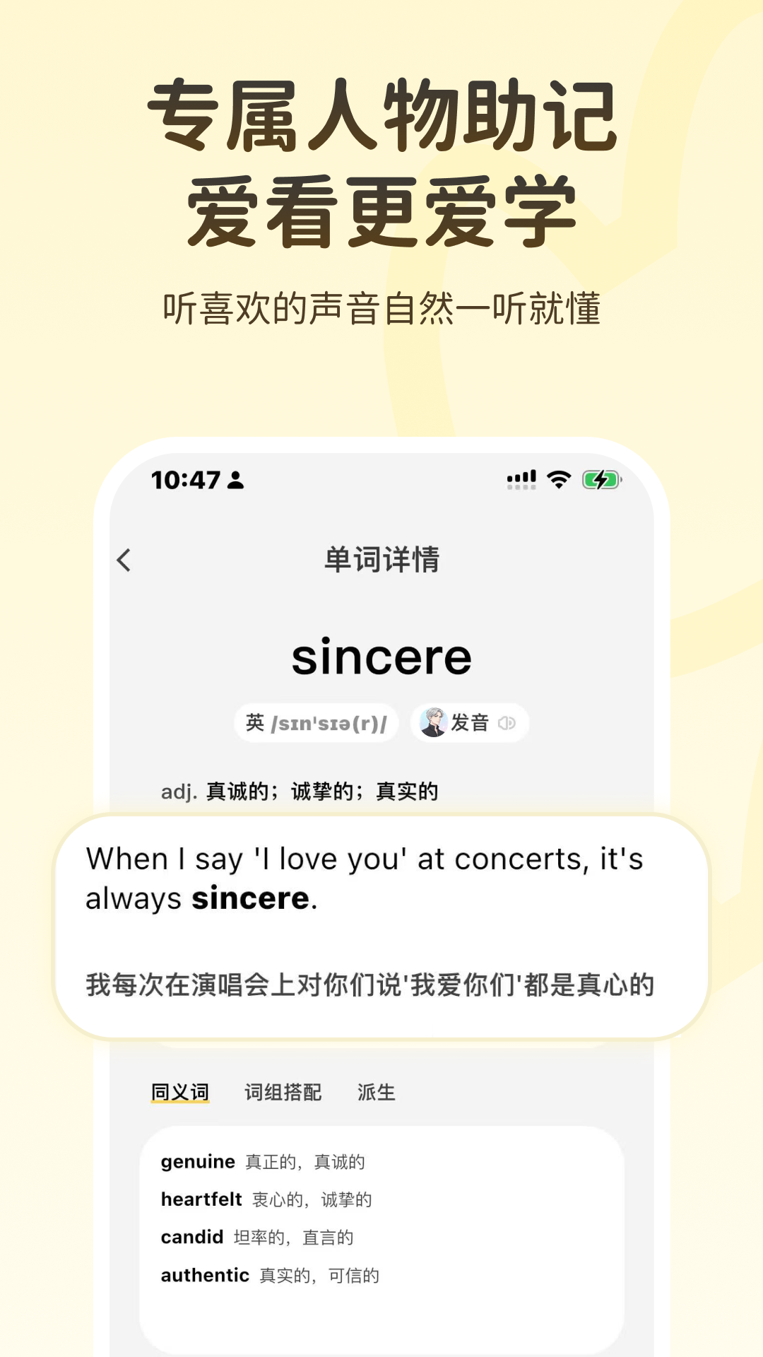 专属单词发音:和你一起背单词,为你读单词,,动力满满。