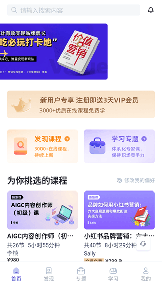 这里课程资源超丰富,涵盖产品经理、运营、市场等热门岗位课程。高清视频播放流畅,还支持视频缓存,离线也能随时学。界面清晰简洁,操作方便。而且有智能学习推荐,根据你的兴趣和进度推荐课程。