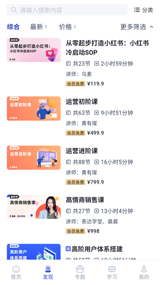4、学习专题则更多是企业管理方面课程。
