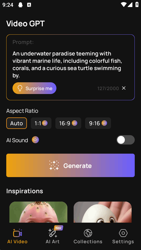AI Video Generator是一款非常好用的ai视频生成器,免费好用,没有会员,将文字想法转化为高质量视频与精美图像,实现想象力可视化,支持故事创作、方案展示、日常娱乐等多场景视觉内容生成,通过AI自动完成创作,无需用户进行专业剪辑操作。