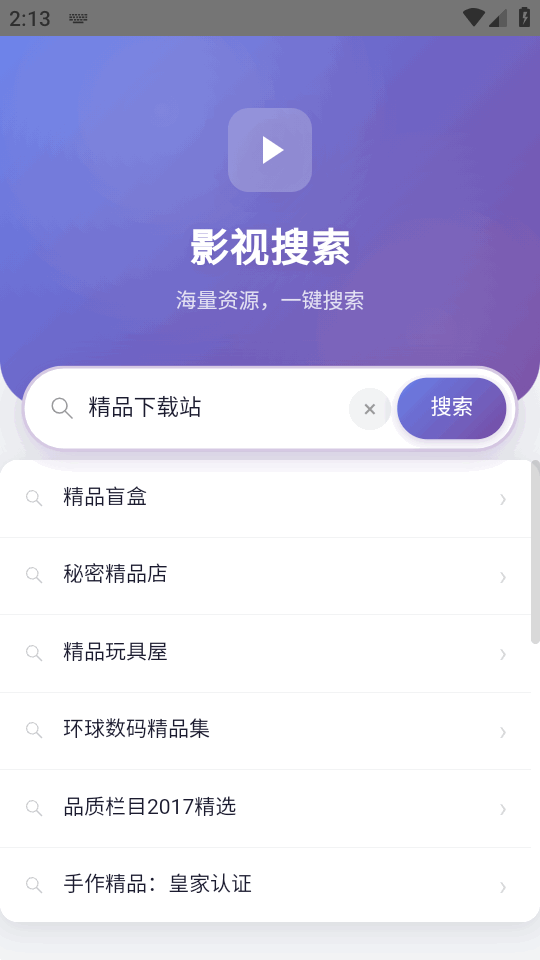 基于h5网页打造的一款手机上免费搜索影视并播放的工具,影视搜索app即装即用,所有资源均来自互联网,不需要手动设置和配置就可以看,只要联网就行,资源还比较高清,部分资源有广告,不要相信,支持本地加载UI界面,保障界面运行流畅不卡顿。