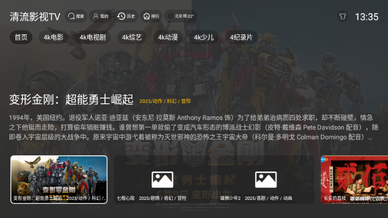 清流影视 TV是一款专为电视端打造的高清影音播放应用,主打全品类 4K 超清观影体验,资源布局十分全面。软件整合超高清画质的电影、长篇剧集、娱乐综艺、二次元番剧、孩童动画以及纪实影像等多元内容,全类别覆盖日常居家观影需求,画质表现细腻清晰。