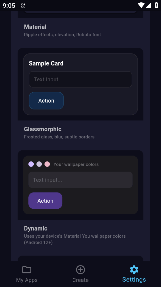 CSS 风格预设——Material、Glassmorphic、Minimal、Dynamic(Material You 着色)——全局应用