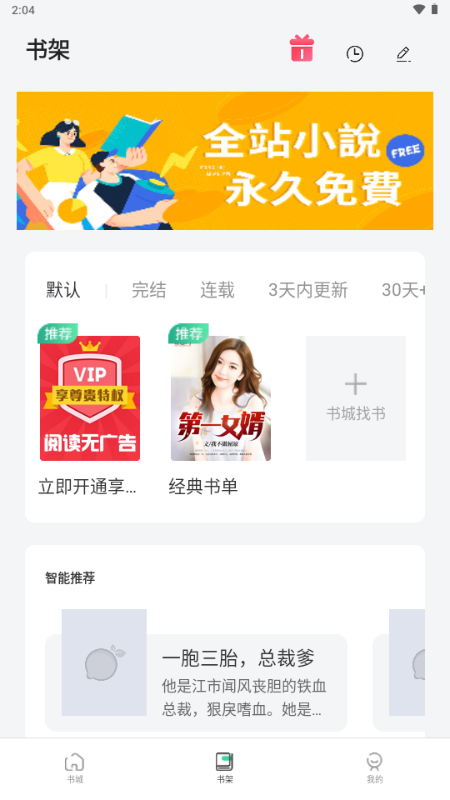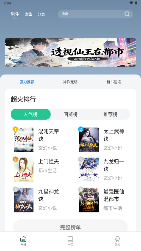1、打开app可以选择男频或者女频,app就会为你推送符合你喜好的小说。
