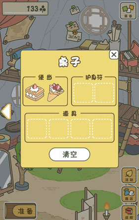 然后我们点击右下角的“小屋”返回房间里,在房间里点击左下角的“准备”按钮,开始为青蛙准备旅行的行李。