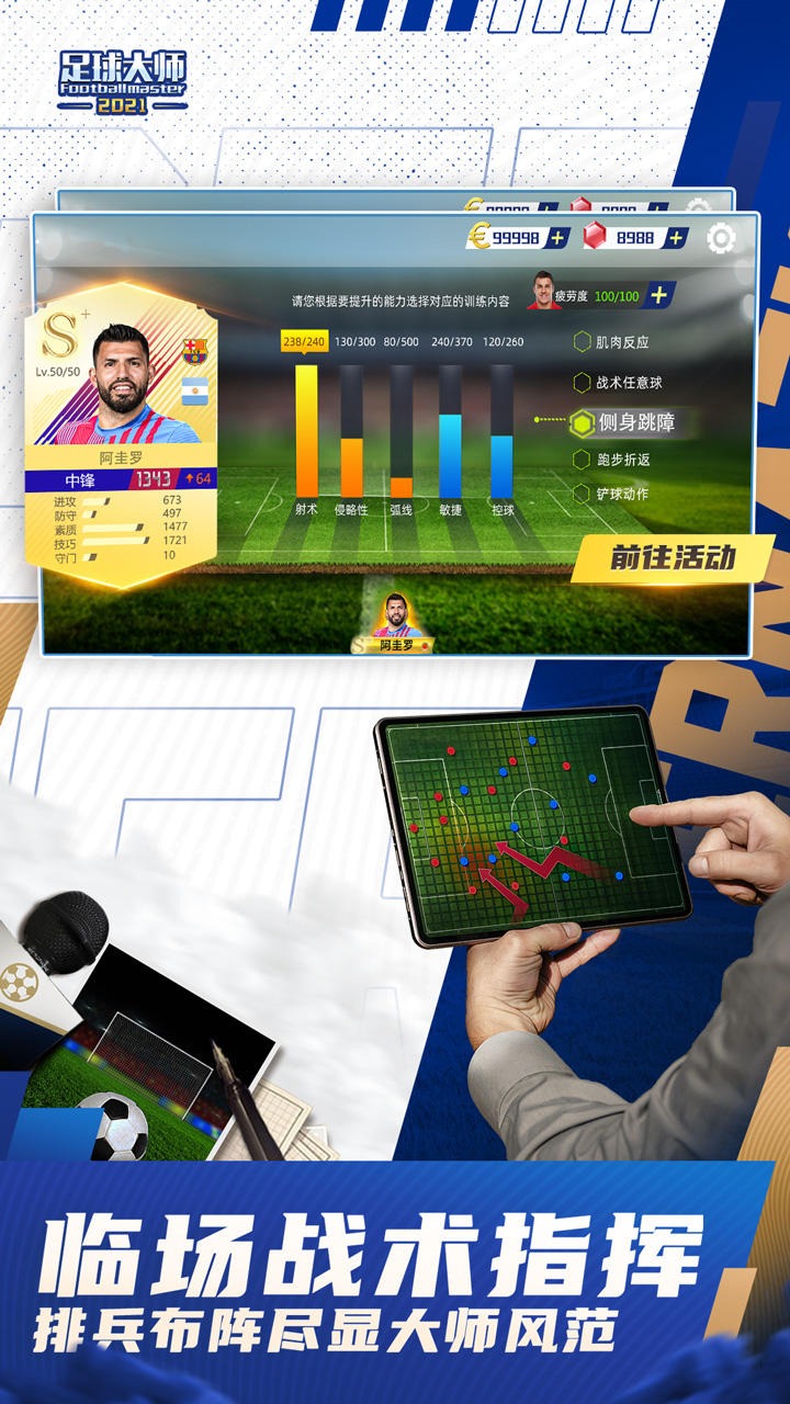 在游戏中,玩家将扮演一名传奇球队教练,通过发掘球星,培养球员,参与世界各地联赛,一步一步打造成世界梦幻球队!梅西,C罗等,组建你的梦幻阵容,丰富挑战等你来战!