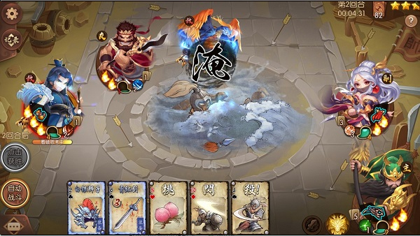 这款游戏继承了三国杀的基本玩法,我们传统的“杀”“闪”“桃”等等牌组依然能看到,包括锦囊牌的利用,武器牌的效果,都仍然沿袭了三国杀的玩法,使得三国杀老玩家也可以直接上手即玩。