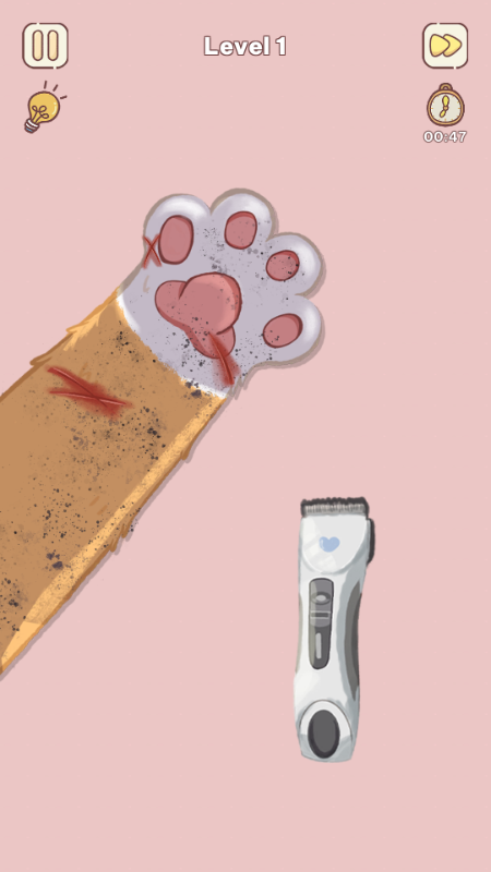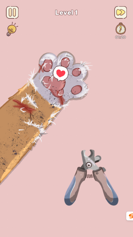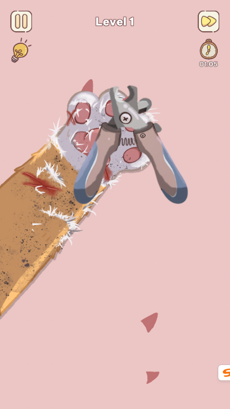 2、例如这个猫咪修剪指甲的关卡;
