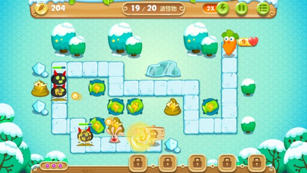新作延续了大部分《保卫萝卜》的Q版画风,不管是萝卜、炮塔、兔子兵、还是地图内的道具,总能让人一眼就看出他们的特点。