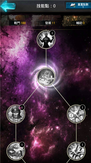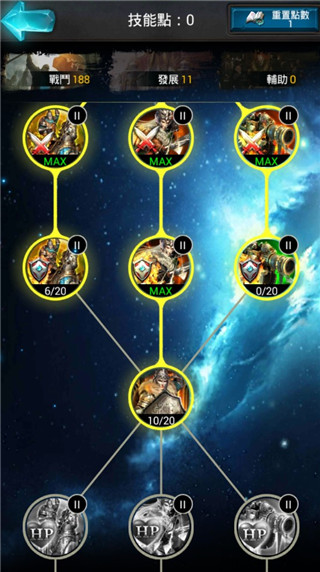 在加点顺序上面,传统建议玩家采取发展→辅助→战斗的路径吧,毕竟游戏中有资源经济能力才能有作战能力,辅助只是提升一些效率;富有挑战的想法可以按照发展→战斗→辅助的加点顺序,因为最终还是围绕战斗技能上研究深耕,从而让我们玩家的实力所向无敌。