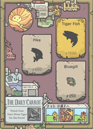 钓到的鱼是不能吃的(当然不能...),所以我们可以卖给商店,赚取微薄的胡萝卜。