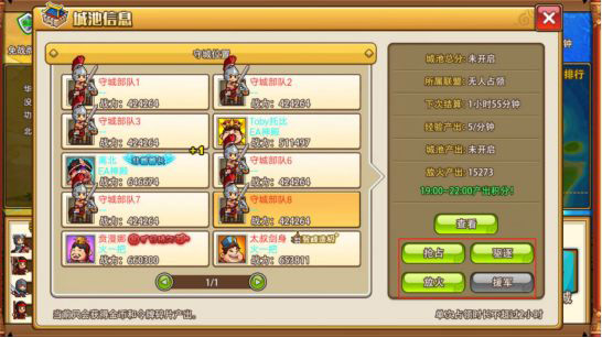 抢城池内共6个城池,不同城池攻打的战力需求不同,占领奖励不同