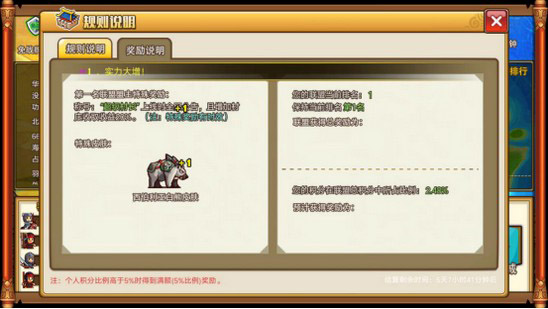 ①结算时按照个人积分占联盟总积分比例,计算并发放奖励(奖励最高位联盟奖励的5%)