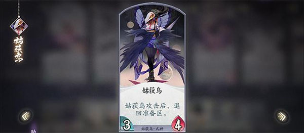 咕咕鸟并不是一个适合养狗的式神,它的定位是前期快攻爆发,从他的卡牌就可以看到,所有的卡几乎都是战斗卡。不过姑获鸟有一个优点,由于其基础能力,战斗后就会自动退回到准备区。