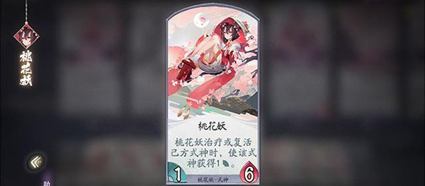 她的存在就是每回合为式神们回复血量,以确保式神的续航能力。不过说实话,这个套牌里无论是姑获鸟还是凤凰火,初始最大血量都只有4点,非常容易死,桃花妖的奶人能力很难发挥出来。
