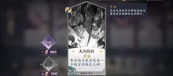 天翔鹤斩是一张非常优质的单卡,可以解对面准备区的式神,并且附带贯通效果。如果要强留姑获鸟在这个套牌,这么天翔鹤斩就必不可少。不过这张卡是SSR,比较难以获取。