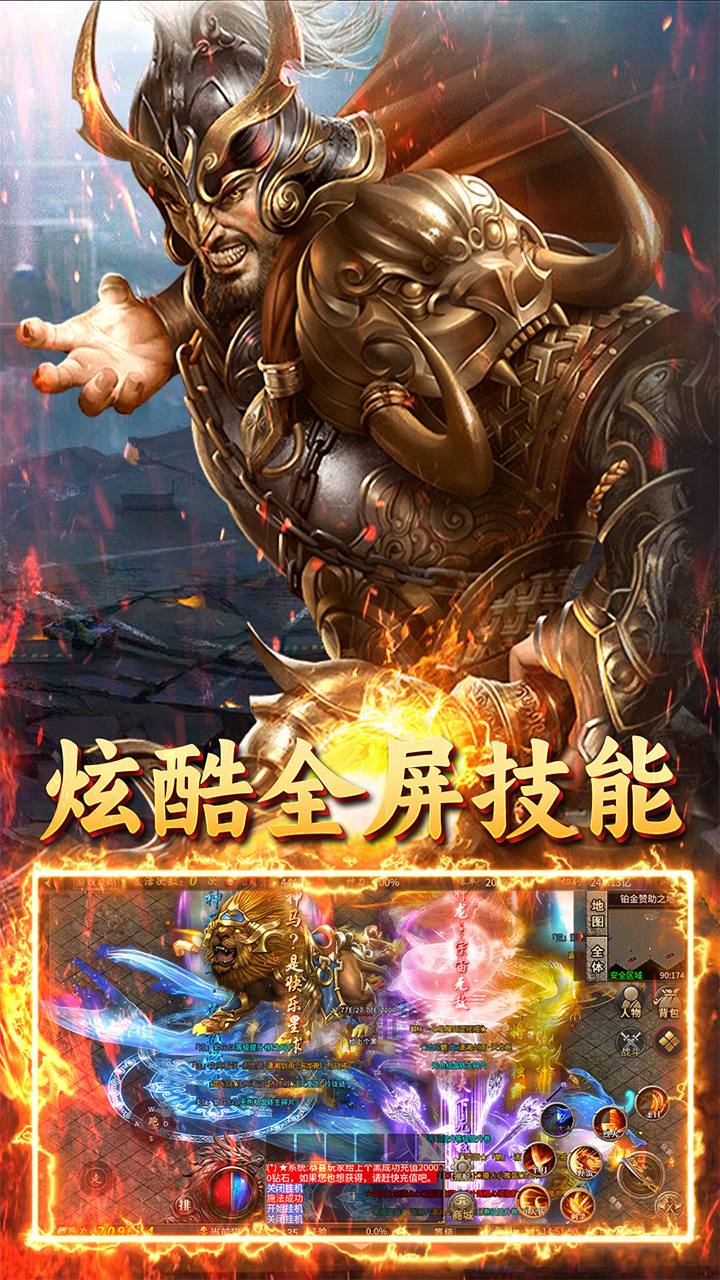 极致热血的战斗画面,超强战力的装备武器,稀有的上古神兽坐骑;