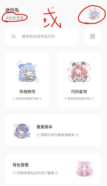 1、打开迷你兔app,完成上述授权后点击右上角的头像,或左上角的"点此处登录"