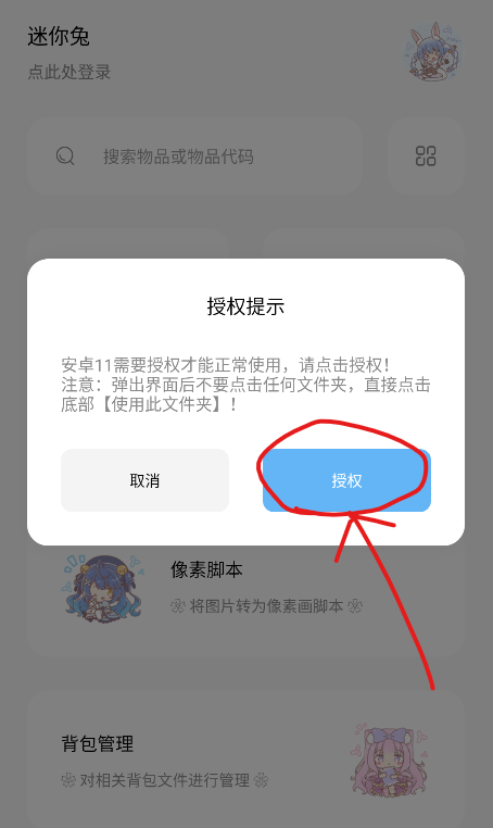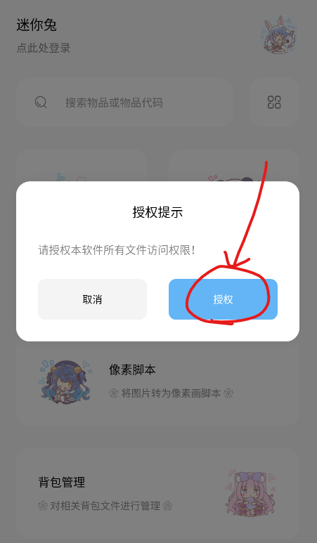 1、打开迷你兔app,点击授权