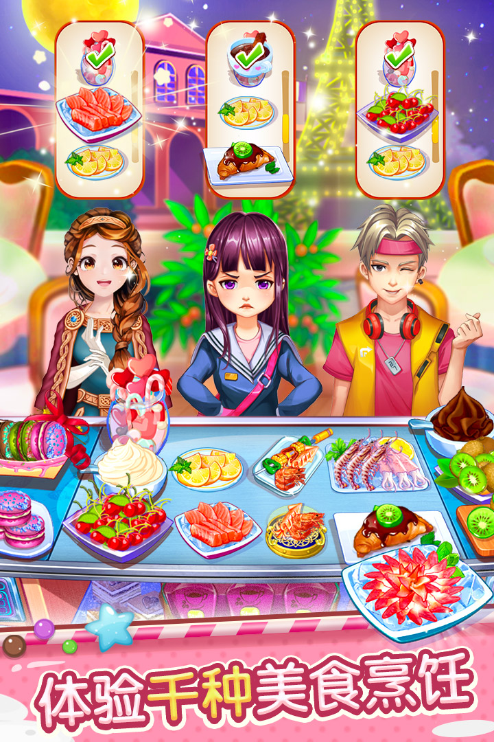 1、用各国菜系搭配特色甜品,惊艳你的顾客,运用时间管理技能,成就连锁餐厅大亨;