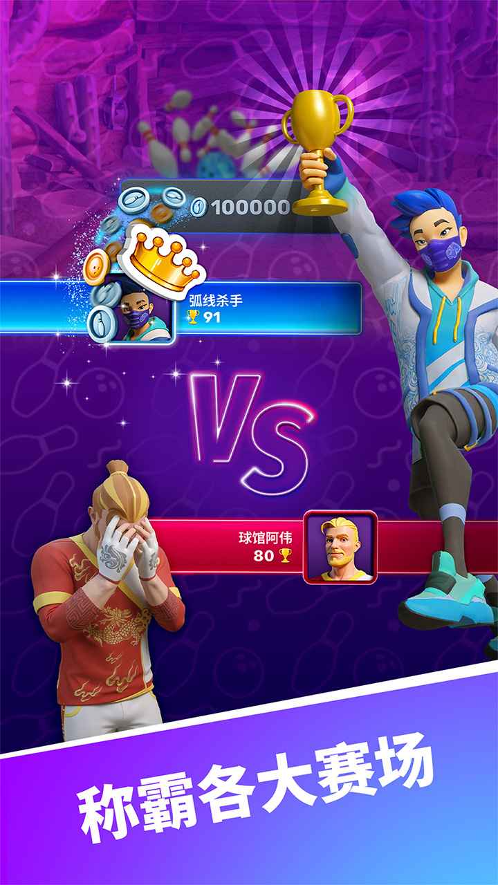 提升保龄球 “旋转效能”“力度”’轨迹‘ 等属性,升级并解锁个性装备,从酷炫球袋到定制手套,打造独一无二的保龄巨星。