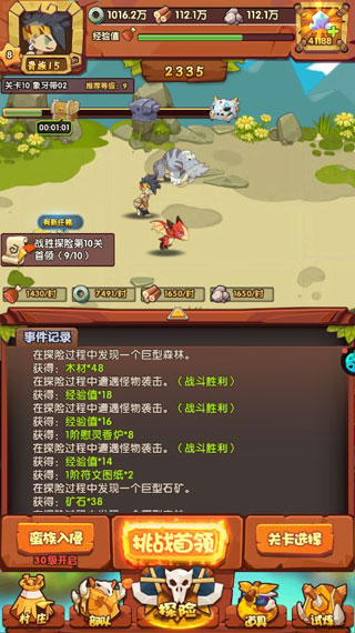 一款题材新颖的放置挂机RPG手游,以远古石器文化为背景,凭借独特新颖的挂机战斗玩法为你诠释游戏无限魅力色彩,游戏画风清新,玩法容易上手,收集资源,建设你的部落,编排培养你的宠物及阵容队伍,携手挑战时代中首领BOSS。爱宠大冒险BT登陆即送贵族VIP15,大量铜币、木材、石料、钻石以及其他登陆奖励丝毫不吝啬的大放送,丝毫不氪金,探索未知的石器文明,切实享受与宠物肩并肩战斗和养成过程,还有氏族互动,资源争夺和部落争霸等玩法加入其中,带给你耳目一新的挂机游戏体验。