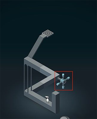 深灰色的通道会向上移动,转一下机关按钮,便会发现由于视觉差的原因,通道竟然神奇的连接上了,接下俩只需要控制角色来到上面的通道尽头即可。
