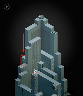第三关:隐寺。带圆点的局部能够挪动。最先把邻近的墙上移过来,走上去。