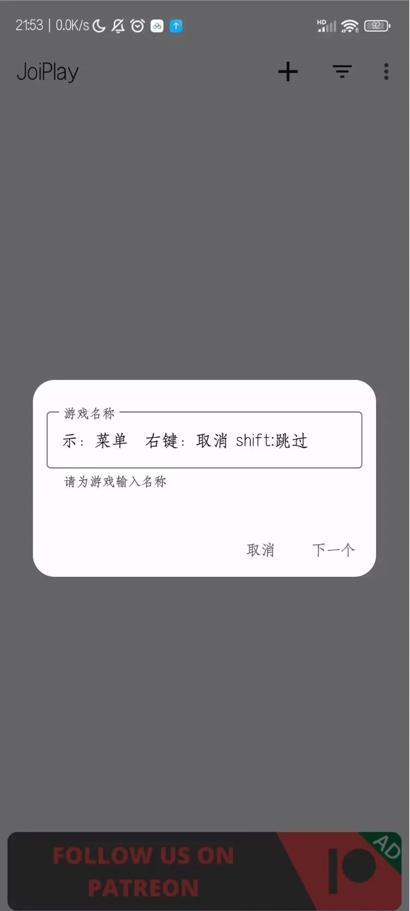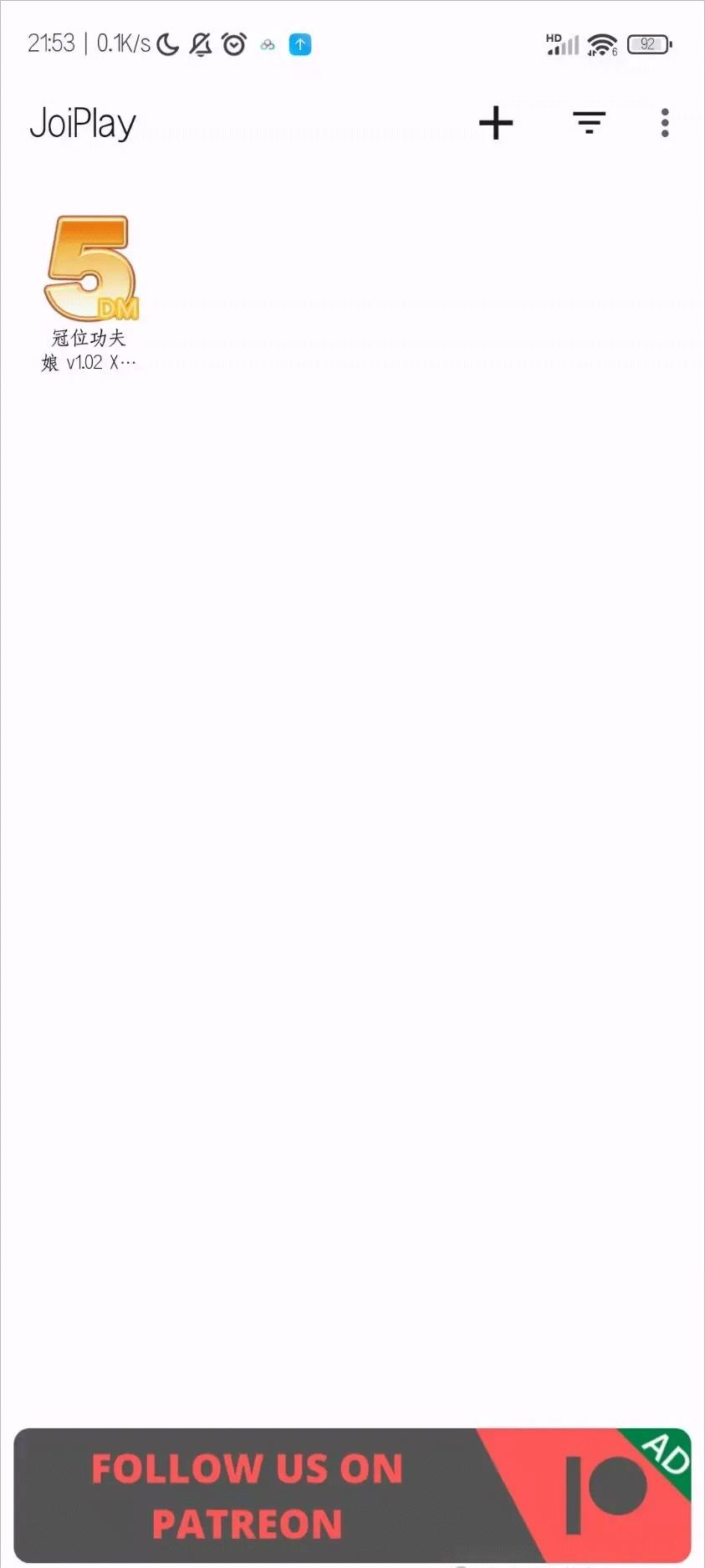 1、首先打开joiplay模拟器三件套最新版,点上面+号选择添加游戏;
