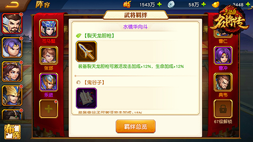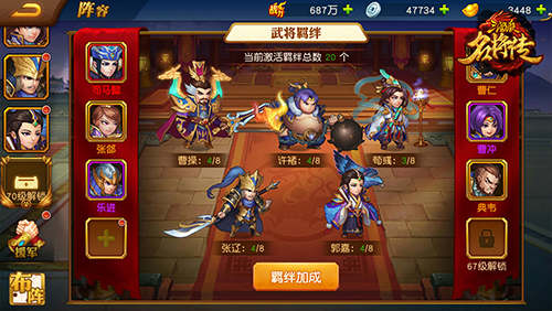 武将羁绊是通过收集和上阵同阵容中的关联武将来激活,增加该武将的攻击和生命的小型图鉴。
