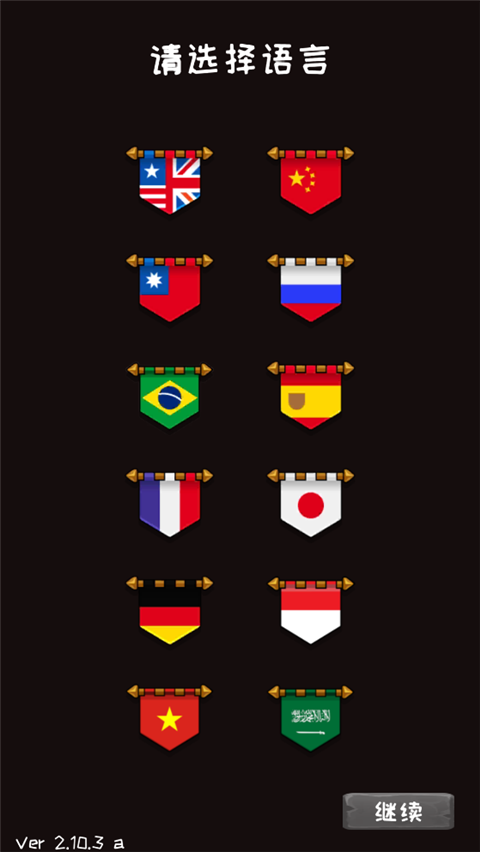 1、在本站免费下载该游戏,安装之后打开,玩家完全是可以按照自己的需求选择“语言”,然后点击“继续”。