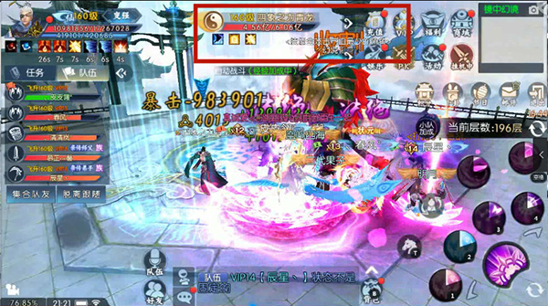 如图,最高难度190-200层,推荐道法为7000万,而经过测试平均一队6500万左右就很容易过,甚至五星,可能这个推荐道法加上了对战道法。