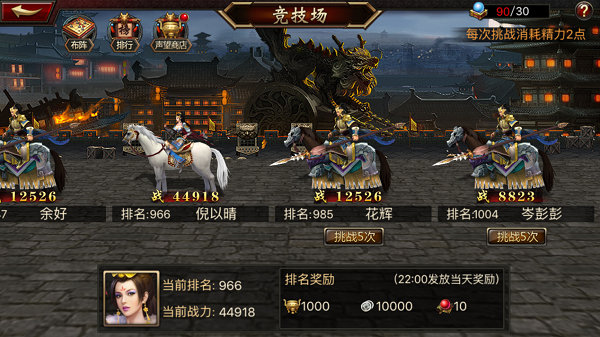 在挑战过程中,我们只能挑战名次相近的对手,对于已经战胜的对手,我们就可以选择挑战五次,刷声望了。