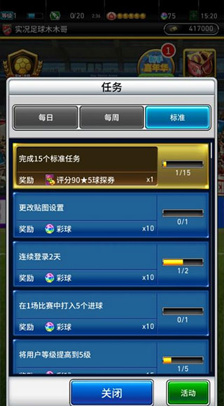 3、球员候选活动-完成任务,获得强力球星助阵