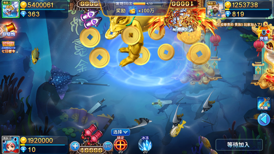 特殊事件、武器狂暴、欢乐摇奖和潜水艇各种新奇玩法都会让你爱不释手!把你带入前所未有的逼真3D海底世界,尽显捕鱼达人本色!