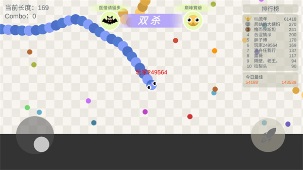 2、利用您的长度去摆出各种造型,去围堵更多的对手,让您的长度更快的增加。