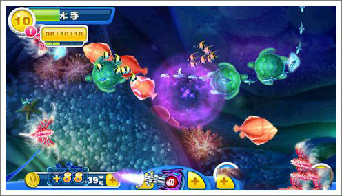 2.游戏紧张刺激;潜艇镭射装置在启动时需不断消耗能量,而能量耗尽镭射会消失,所以玩家既需要在碰撞前启动镭射捕装置捕获鱼类又要控制能量的消耗,这大大增加了游戏的紧张刺激感,游戏更好玩。