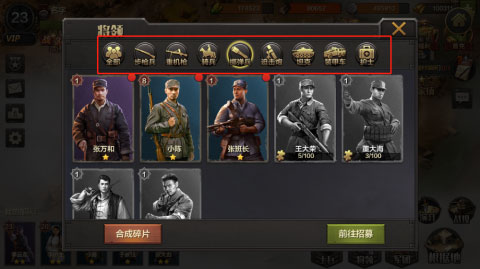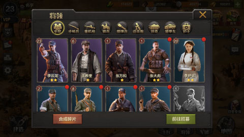 1、点击将领可以看到所有类型将领所带领的士兵类型。